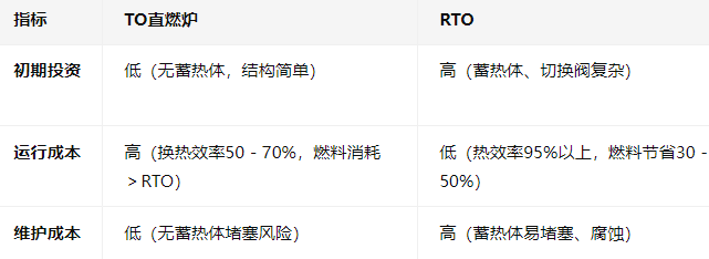 TO直燃爐與RTO(蓄熱式熱力焚燒爐)是VOCs治理主流技術,經濟性差異如下: