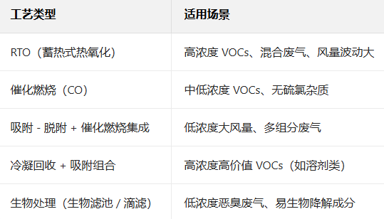 二、主流處理工藝對比(化工復雜廢氣適配版)