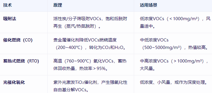 烘爐廢氣中的VOCs(如苯系物、醇類、酯類)需重點處理,核心技術包括: