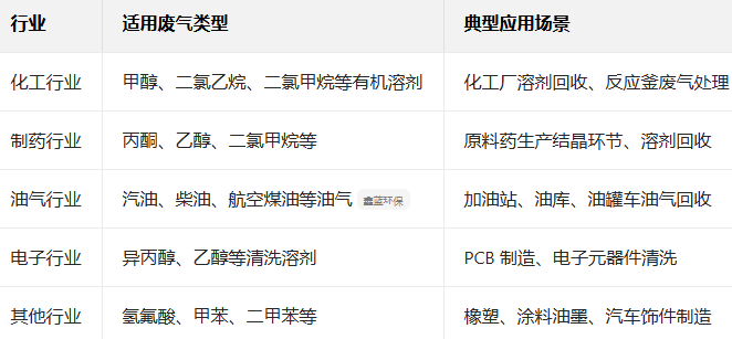 鑫藍環保的冷凝回收系統廣泛應用于多個行業,特別適用于處理高濃度、高價值的VOCs廢氣:
