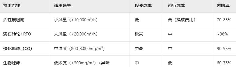 沸石轉輪濃縮比(15:1~25:1)降低后續處理規模