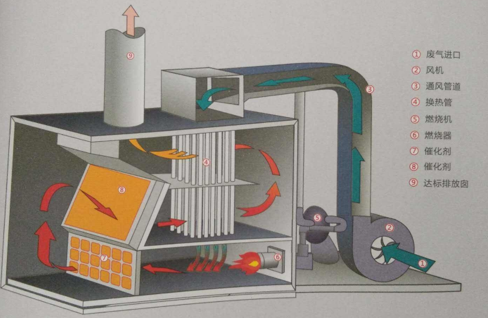 熱力燃燒法適合于處理濃度在1000—5000 mg/m³ 的廢氣,采用蓄熱燃燒法,廢氣中VOCs濃度較低,需要借助其他燃料或助燃氣體,熱力燃燒所需的溫度較直接燃燒低,大約為540—820℃。燃燒法處理VOCs廢氣處理效率高,但VOCs廢氣若含有S、N等元素,燃燒后產生的廢氣直接外排會導致二次污染。燃燒裝置需要多套且需要很大的占地面積。熱力燃燒比較適合24小時連續運行且濃度較高而穩定的廢氣工況,不適合間斷性的生產線。