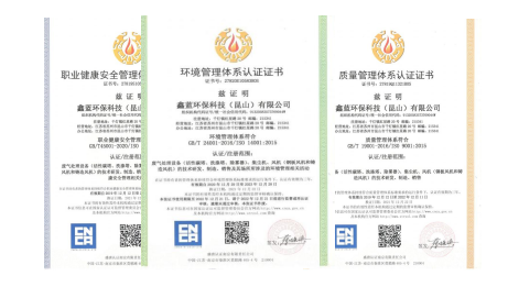 (鑫藍(lán)環(huán)保職業(yè)健康安全管理體系認(rèn)證證書、環(huán)境管理體系認(rèn)證證書、質(zhì)量管理體系認(rèn)證證書)