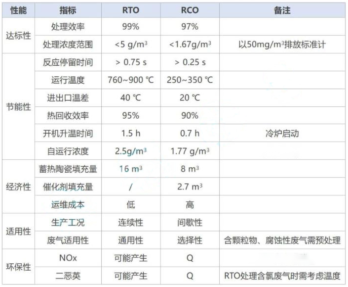 有機廢氣處理廠家鑫藍環保簡要梳理總結兩種技術的主要性能及關鍵運行參數: