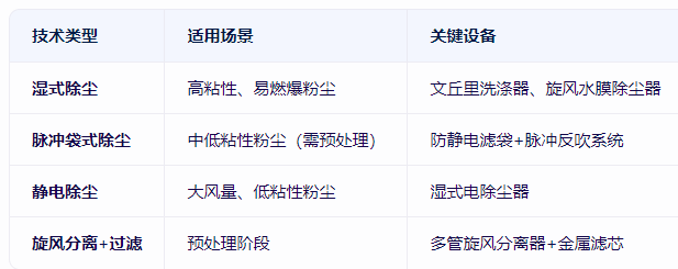 降溫/除濕:通過冷凝器或干燥裝置降低粉塵濕度(適用含水粘塵)。